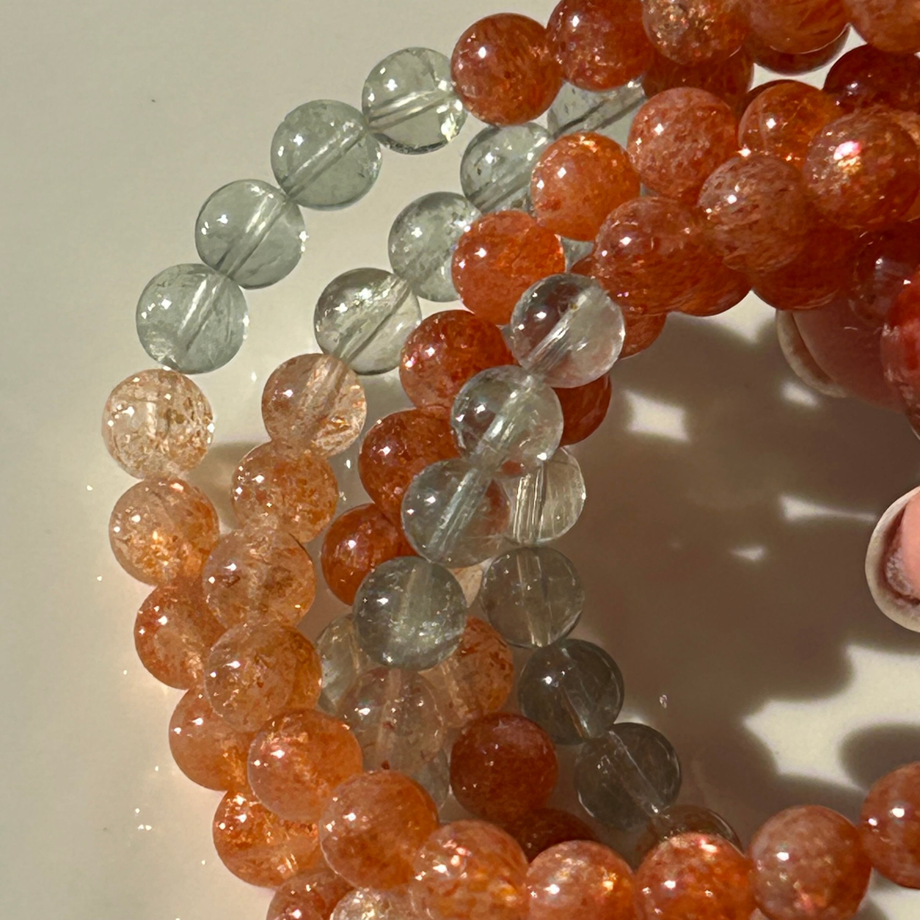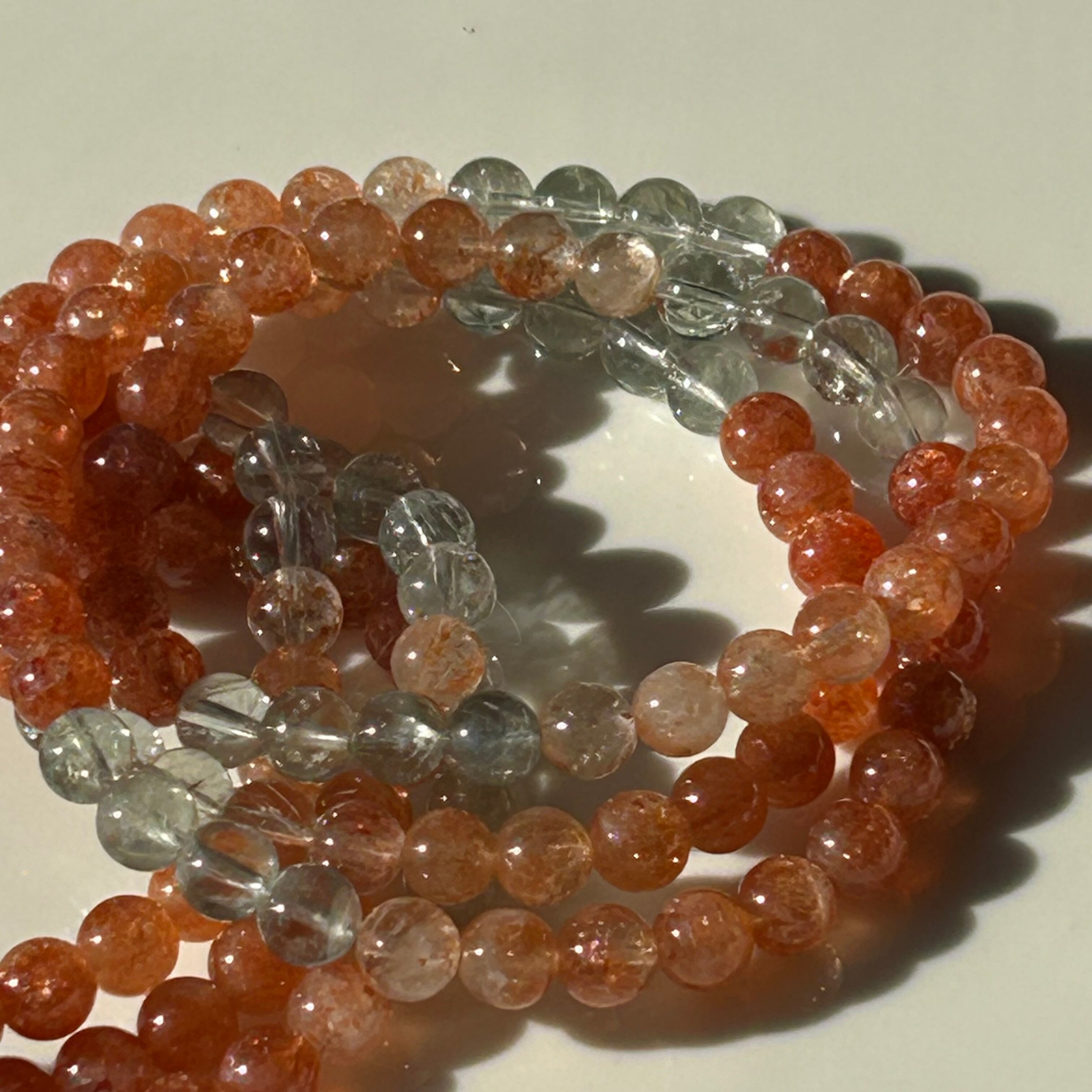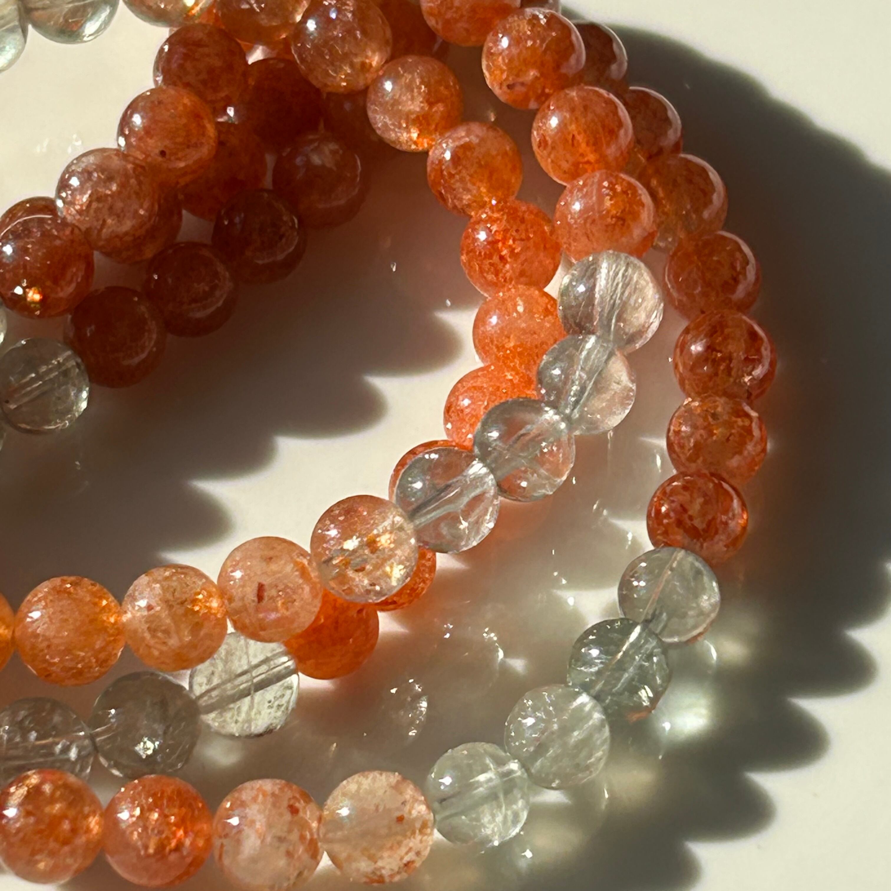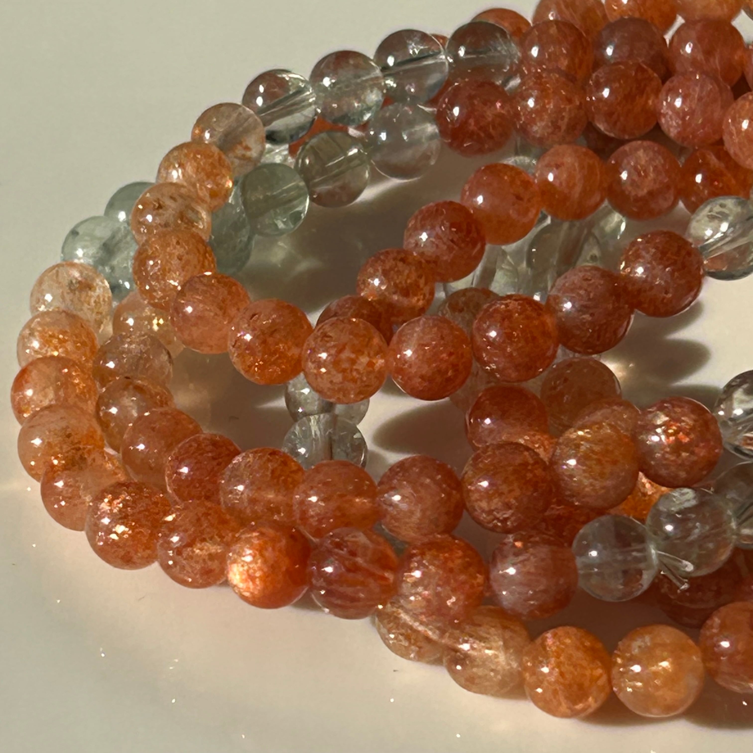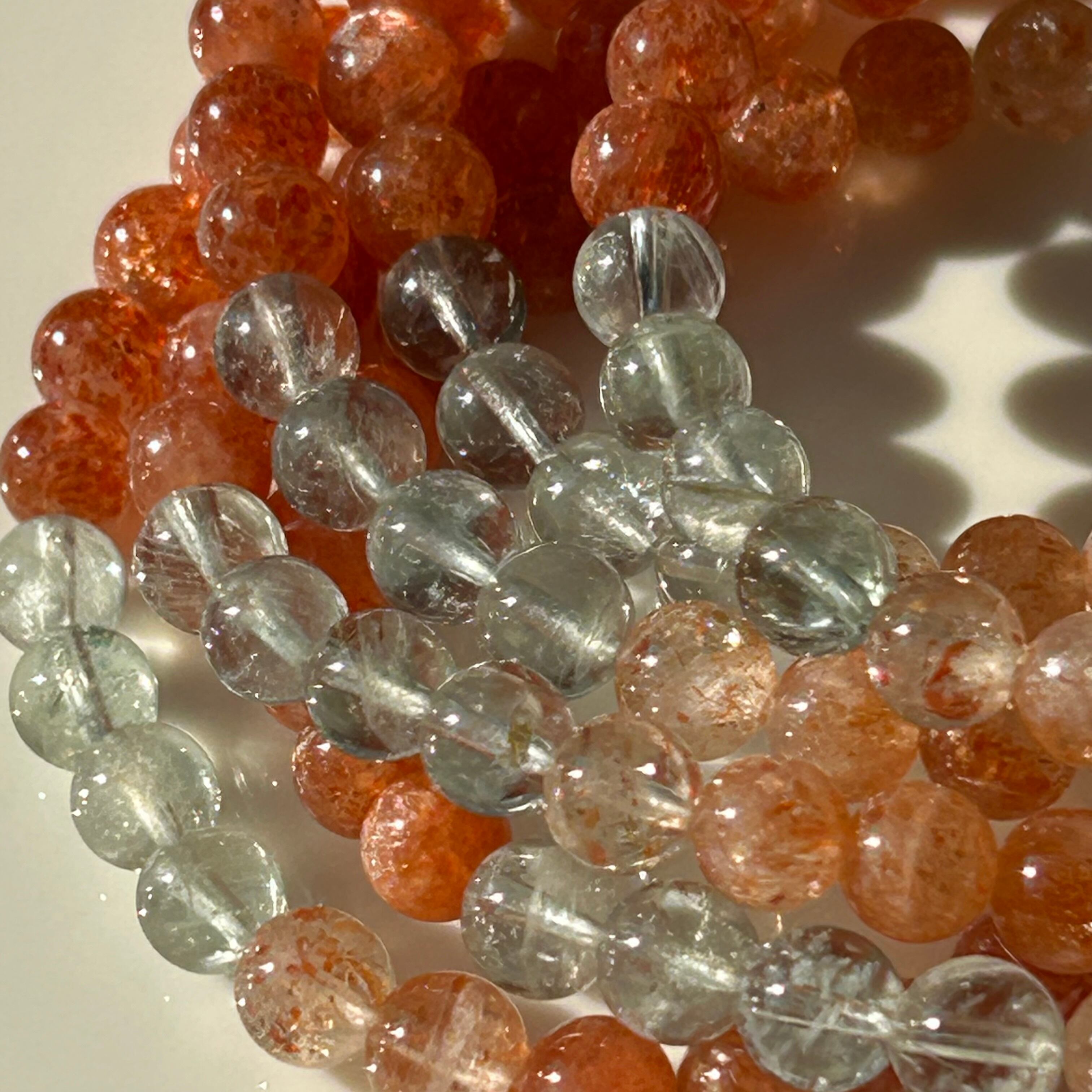 オレンジ、白、グリーン、ブルーなど色とりどりの色彩をもつ非常に珍しいサンストーンになります⟡.·*.